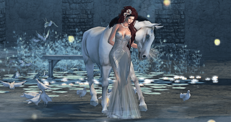 This awesome jewellery set is called Cerse by Moondance Boutique. This set includes: necklace, earrings, bracelets & rings. All changeable by hud.