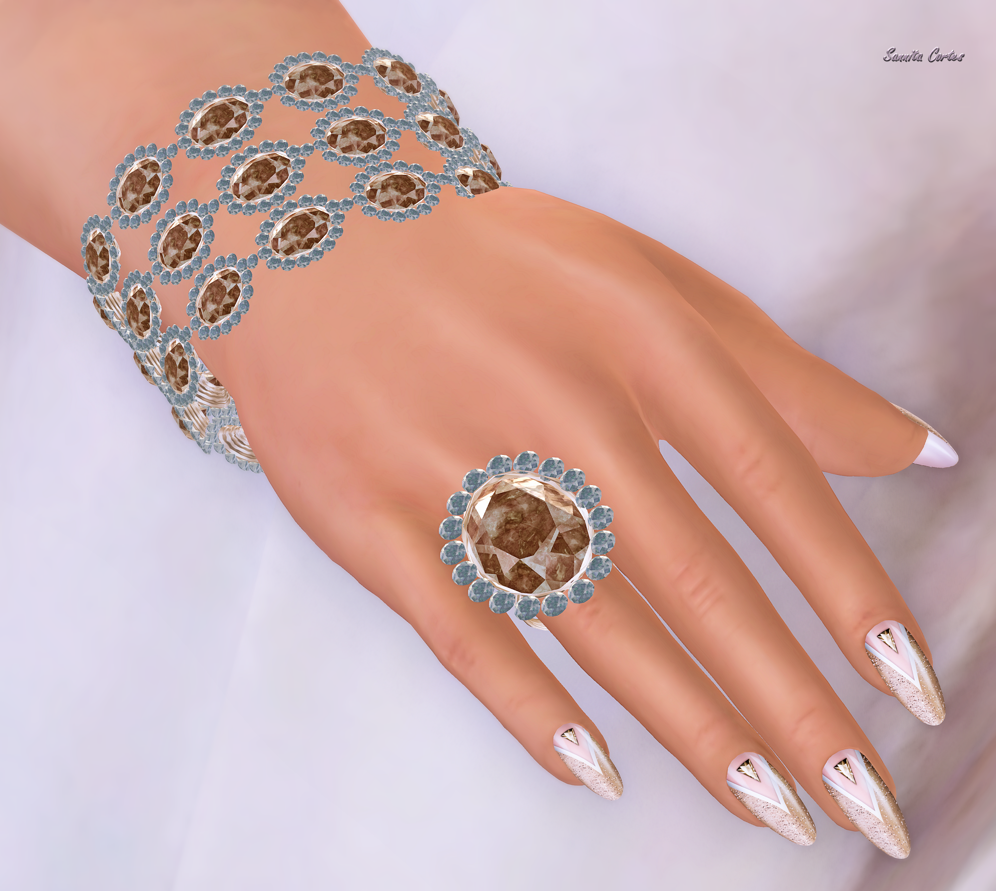 This awesome jewellery set is called Cerse by Moondance Boutique. This set includes: necklace, earrings, bracelets & rings. All changeable by hud.