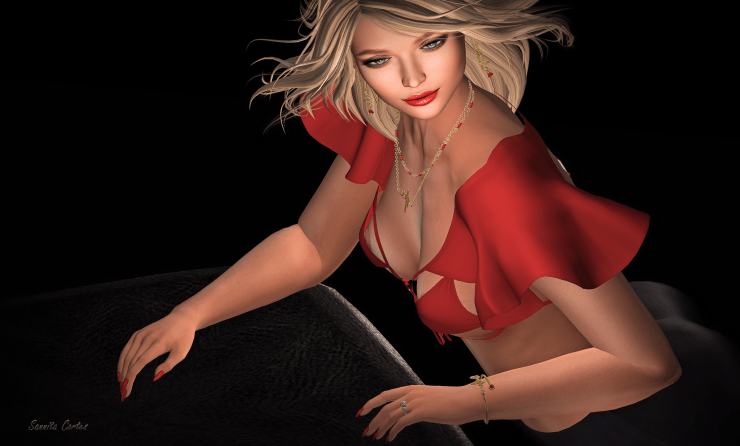 The beautiful top is the Elisa Top by Apple Heart Inc. Comes with sizes for Belleza, Maitreya & Slink. Included is a colour change hud with 3 options and 19 colours.