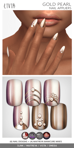 ▪ 6 nail designs + 4 Maitreya manicure mixes . Made for Slink, Omega, Maitreya, & Vista nails