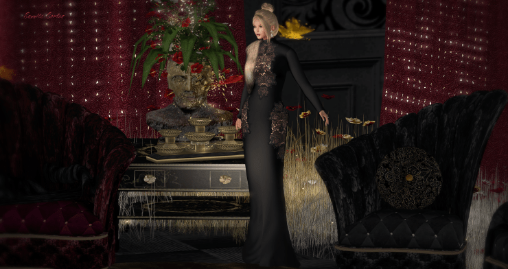 SWANK with the Hollywood Glam theme ist still running until the end of the month. I showed you yesterday some furniture and decor. Today, I put on my new gown Gia by JUMO Fashion.
