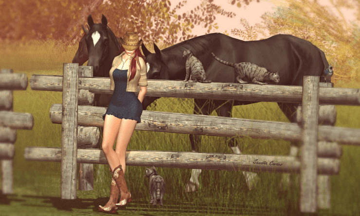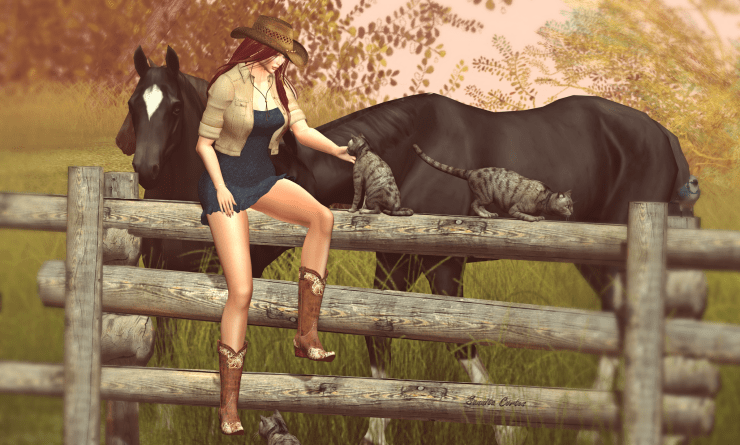 And to make the western look complete in clothing I matched this with the Lined Denim Jacket by Moz Designs. I played around with the sizes in the pack – I am wearing the Maitreya Body and