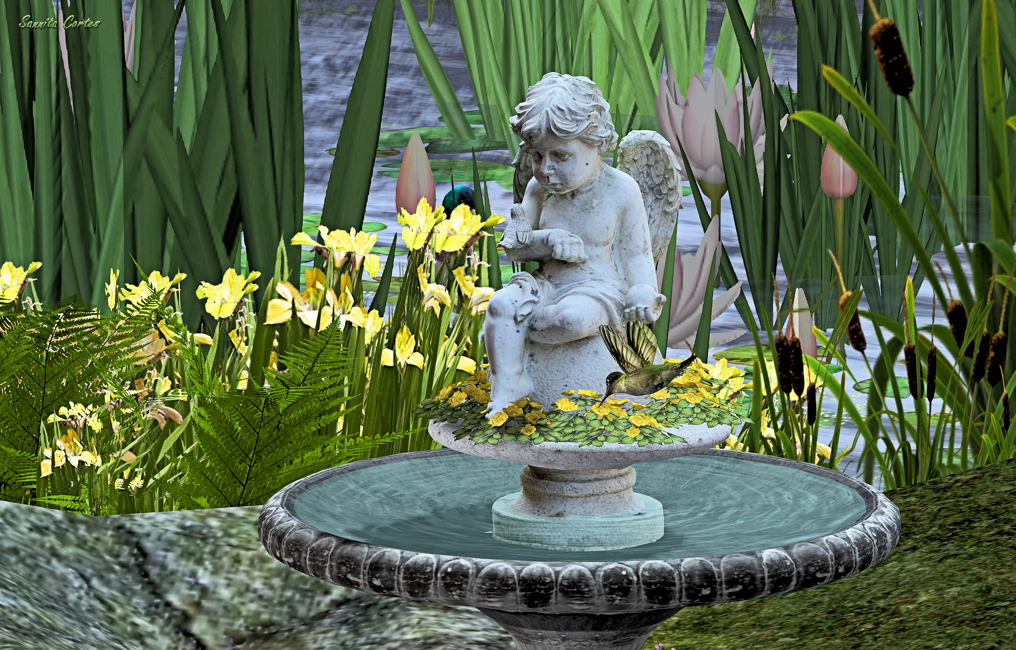 With flapping Hummingbird + animated Water