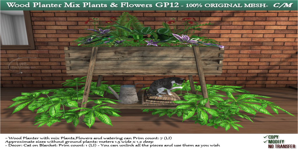 .:Tm:.Creation – Wood Planter Mix Plants & Flowers GP12