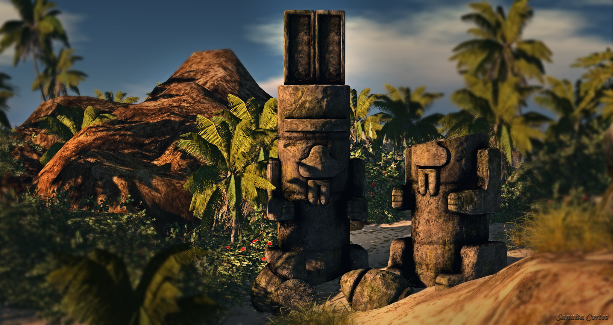 For now I took photos with different Windlights in SL from the Easter Island statues by HarshLand for this round of Swank!