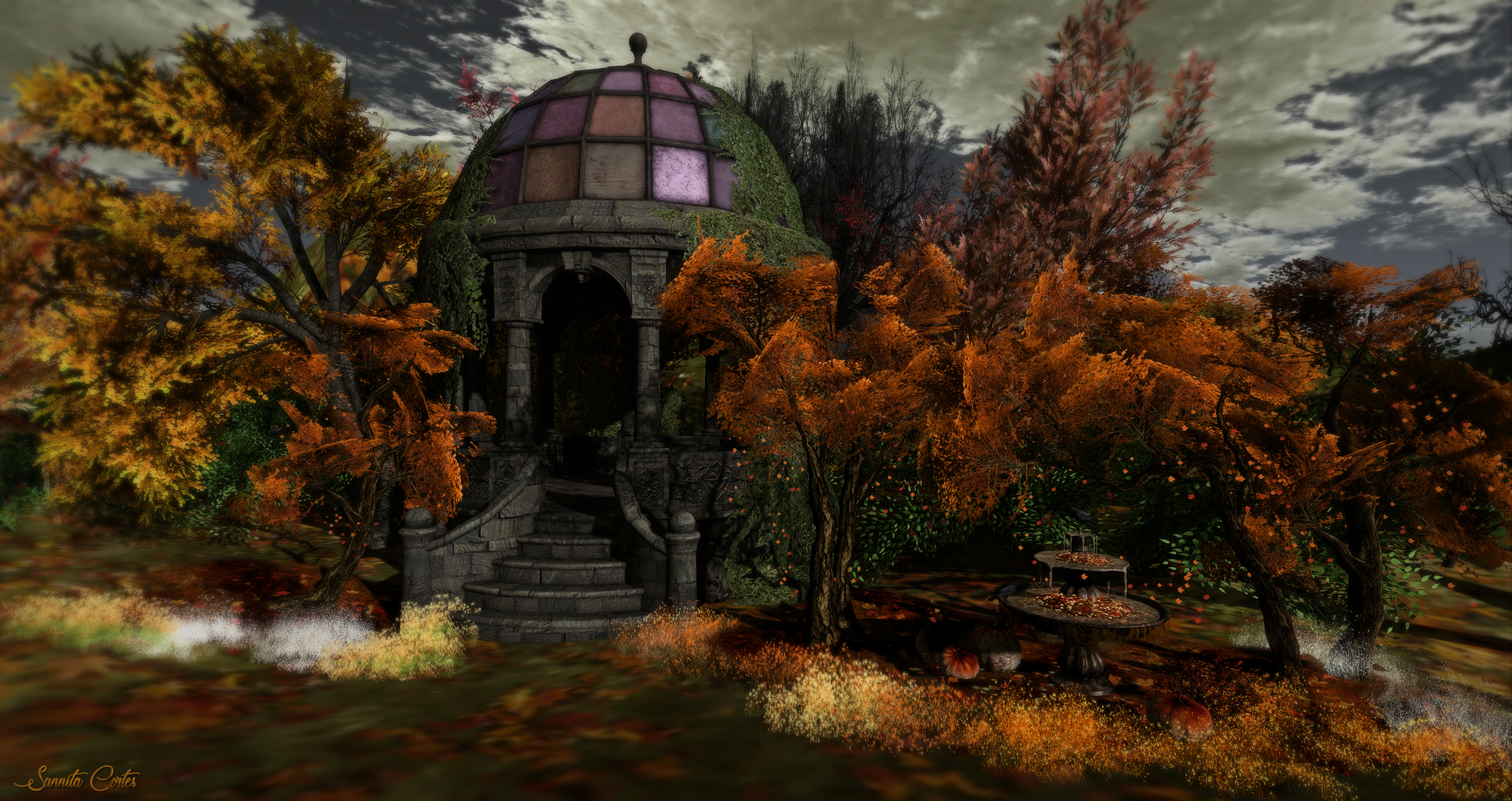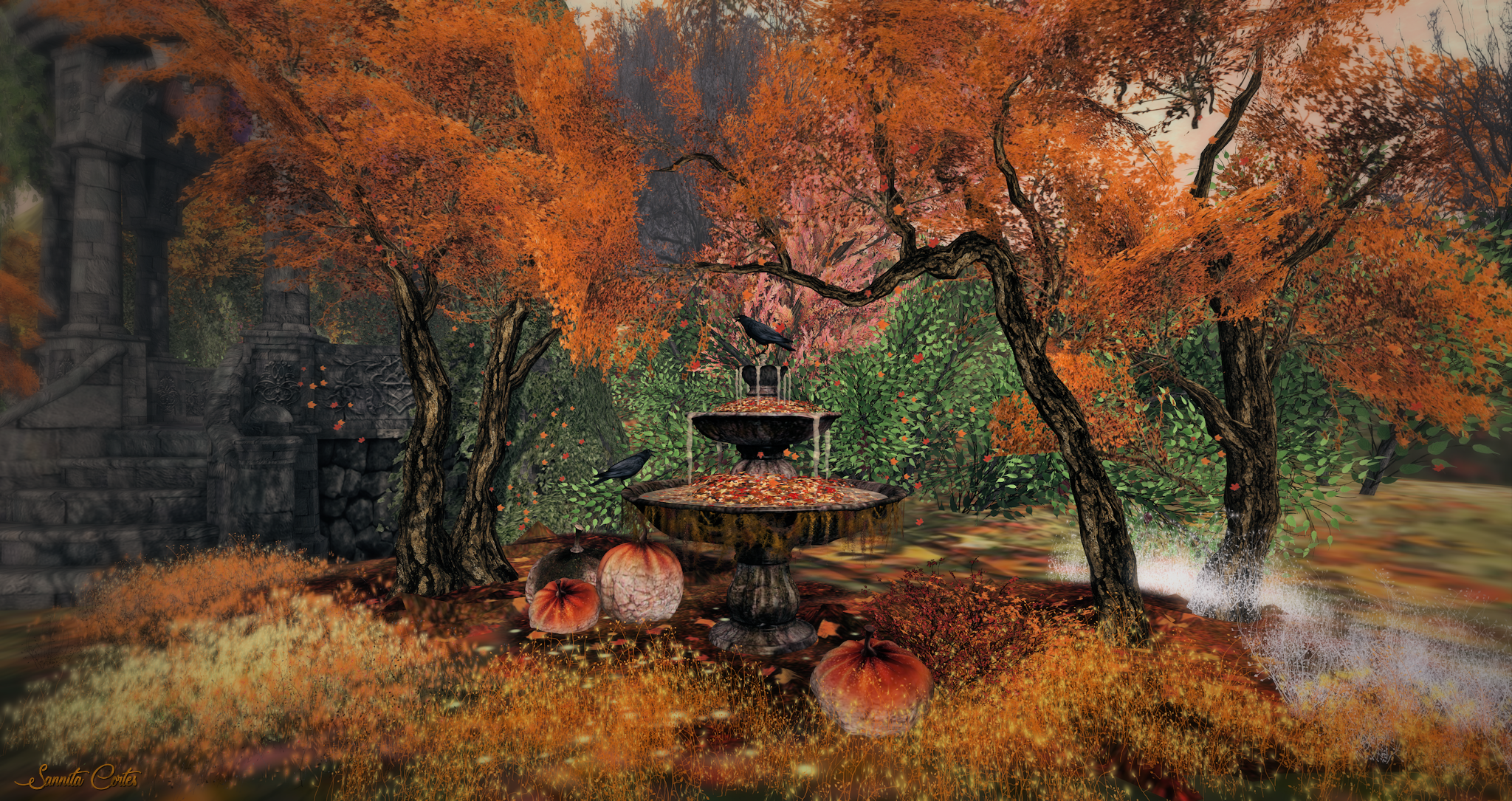 incl. Hud to change the colour of ground cover, fountain, pumpkins - HALLOWEEN MESH PATCH TREES SCRIPTED + HUD