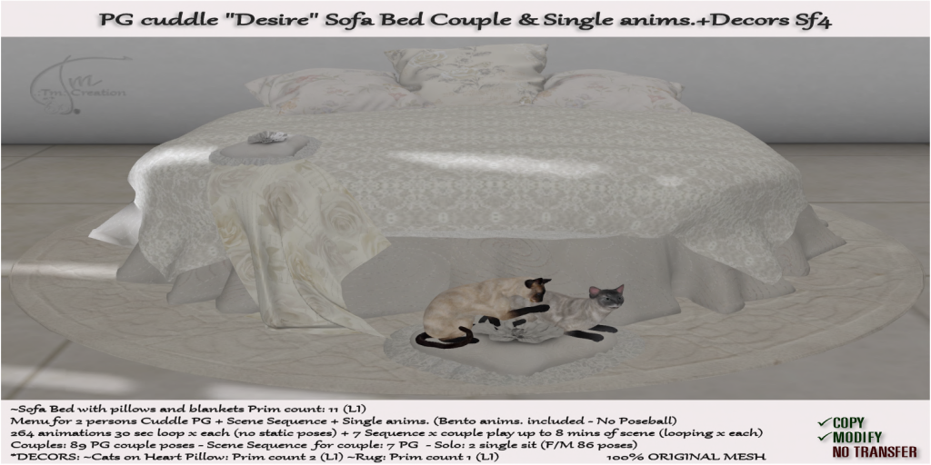 *Decors: ~Cats on Heart Pillow: Prim count 2 (LI) ~Rug 1: Prim count 1 (LI)