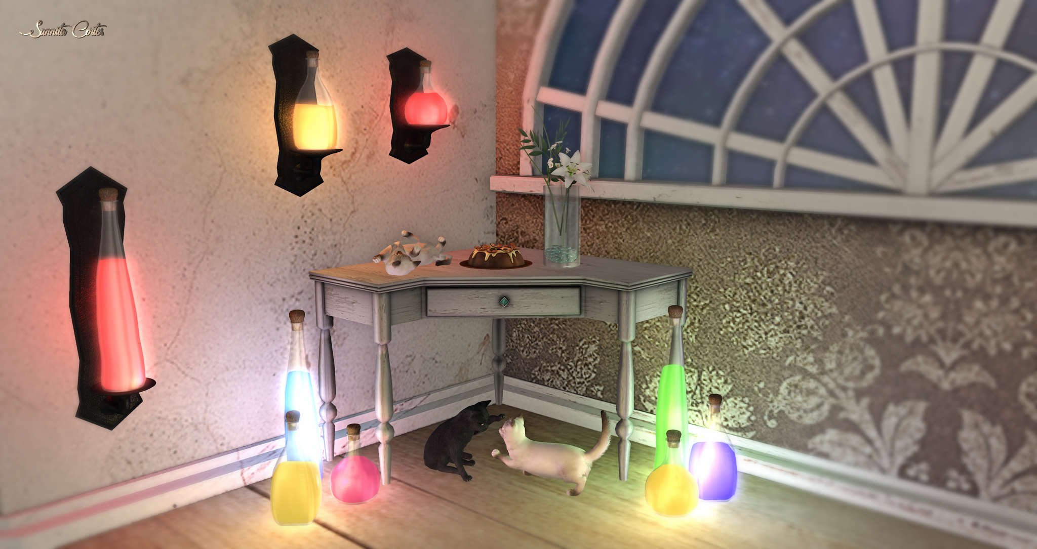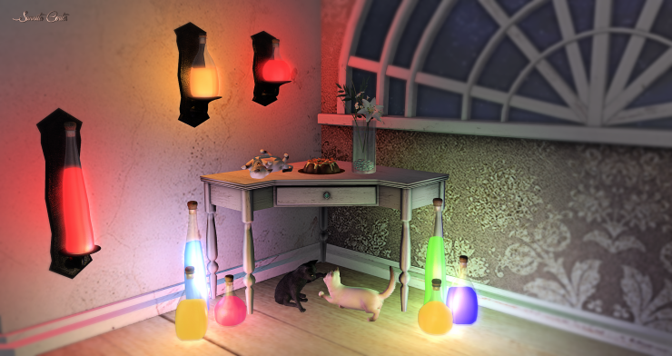 The lamps are “Potion Lamp” by Candle & Cauldron for Syndicate Sunday this week. Available in 3 versions: