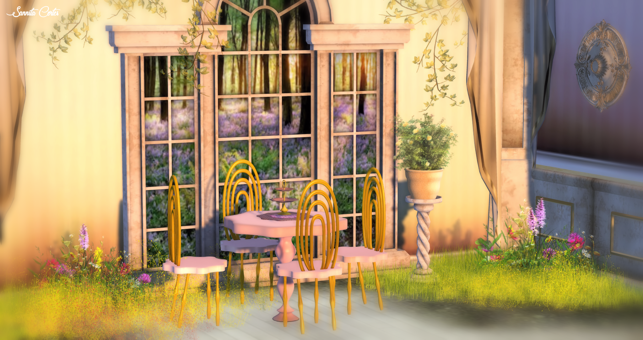 Available are the table and chairs (6 animations) in 6 colours, the doily & cake stand are texture change . Fatpacks are also available.