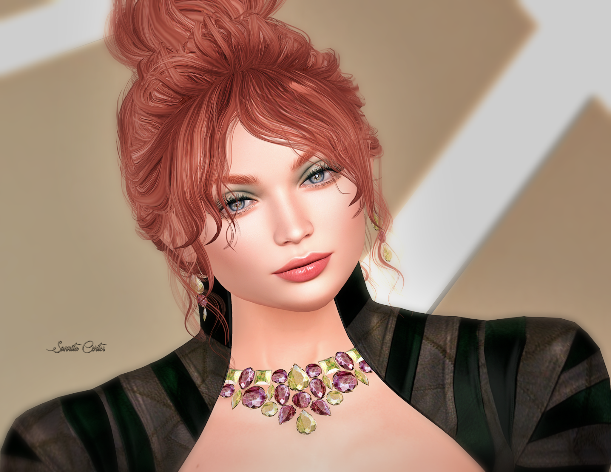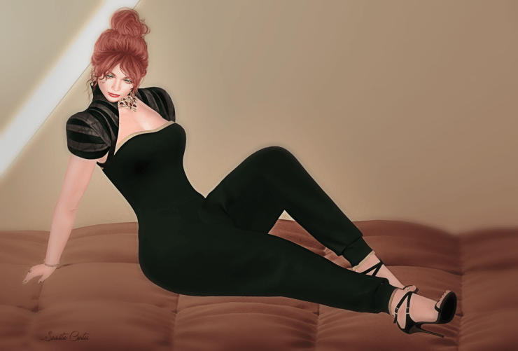 I matched this beautiful jumpsuit outfit with jewellery by Moondance Boutique. The Harmony jewellery set is available at Designer Showcase until the end of March. It comes with necklace, earrings, bracelets and rings. Included is a colour change hud for metals and gems as well a resizer option.