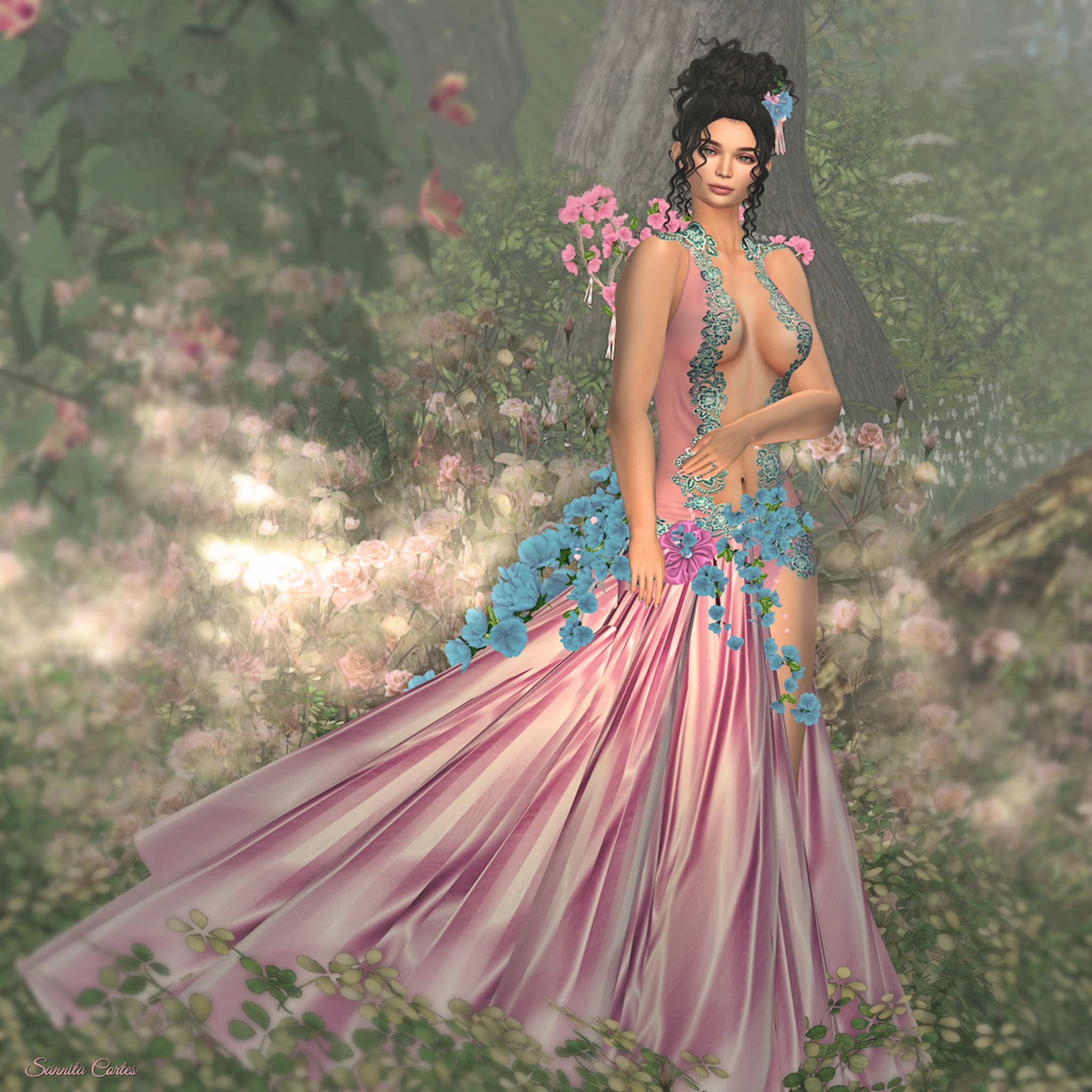 It is available in 10 colours. Each pack includes the dress with applier for Belleza, Maitreya, Slink, Altamura, Omega and classic clothing layer as well as all flower attachments, skirt and skirt panel – also included are stud earrings.