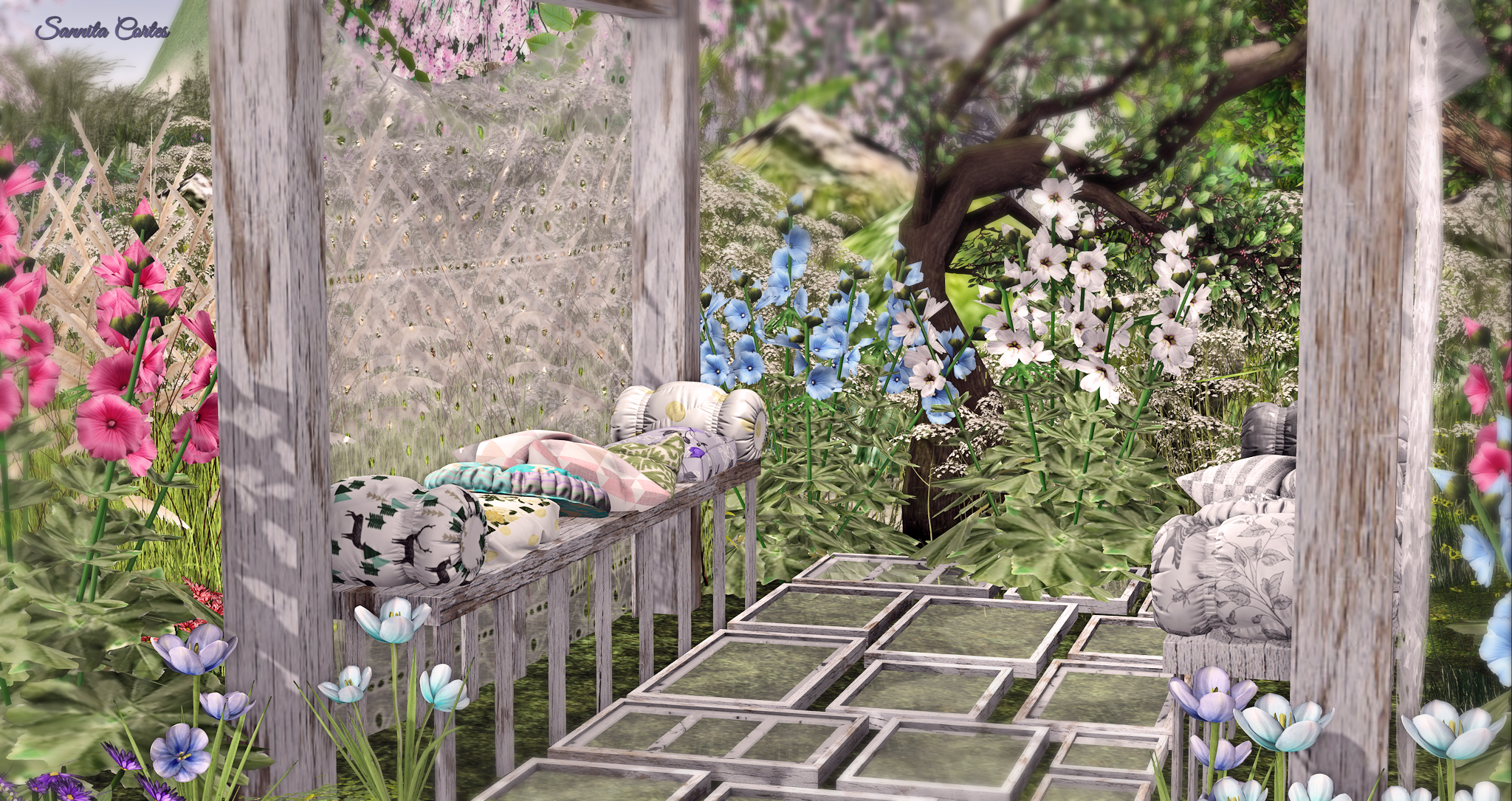 In the following photos you see a beautiful spring garden, combinated of some designers creations to get there.
