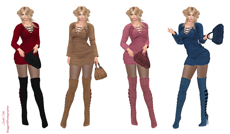 THis outfit includes a colour change hud with the option to change dress, laces of dress, boots, laces of boots and handbag individually.