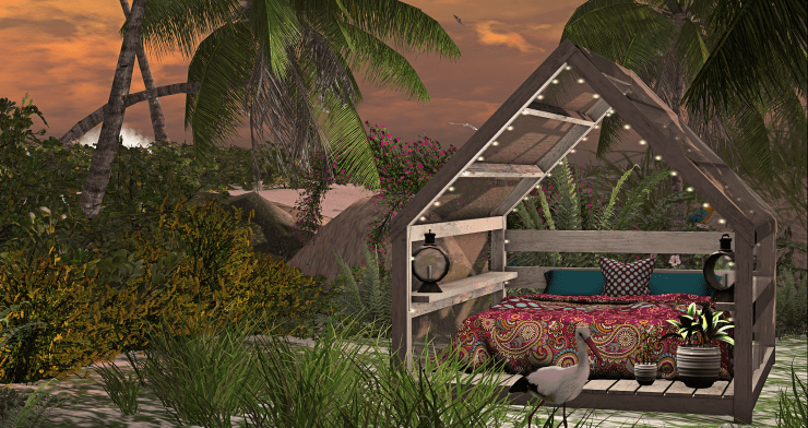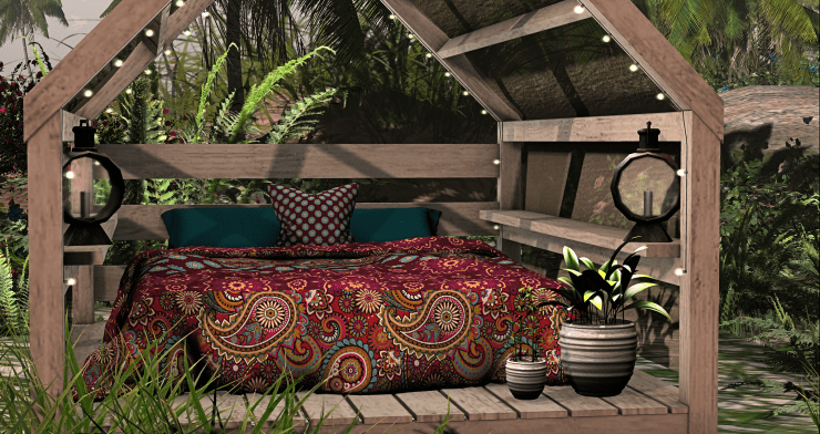 Bed, Cabana and Decor.