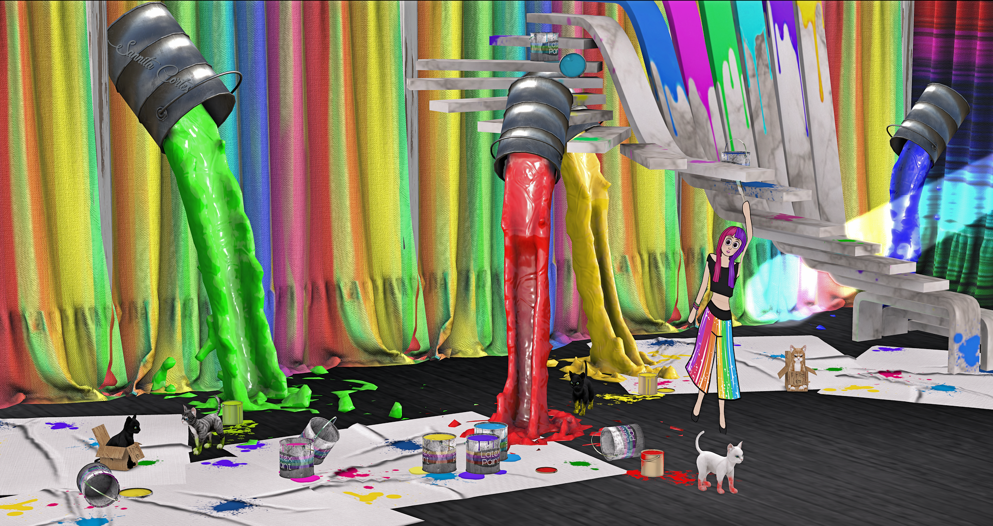 A backdrop I rebuilt a little bit. Stairs, and paintbuckets all over the floor and chairs are in this backdrop