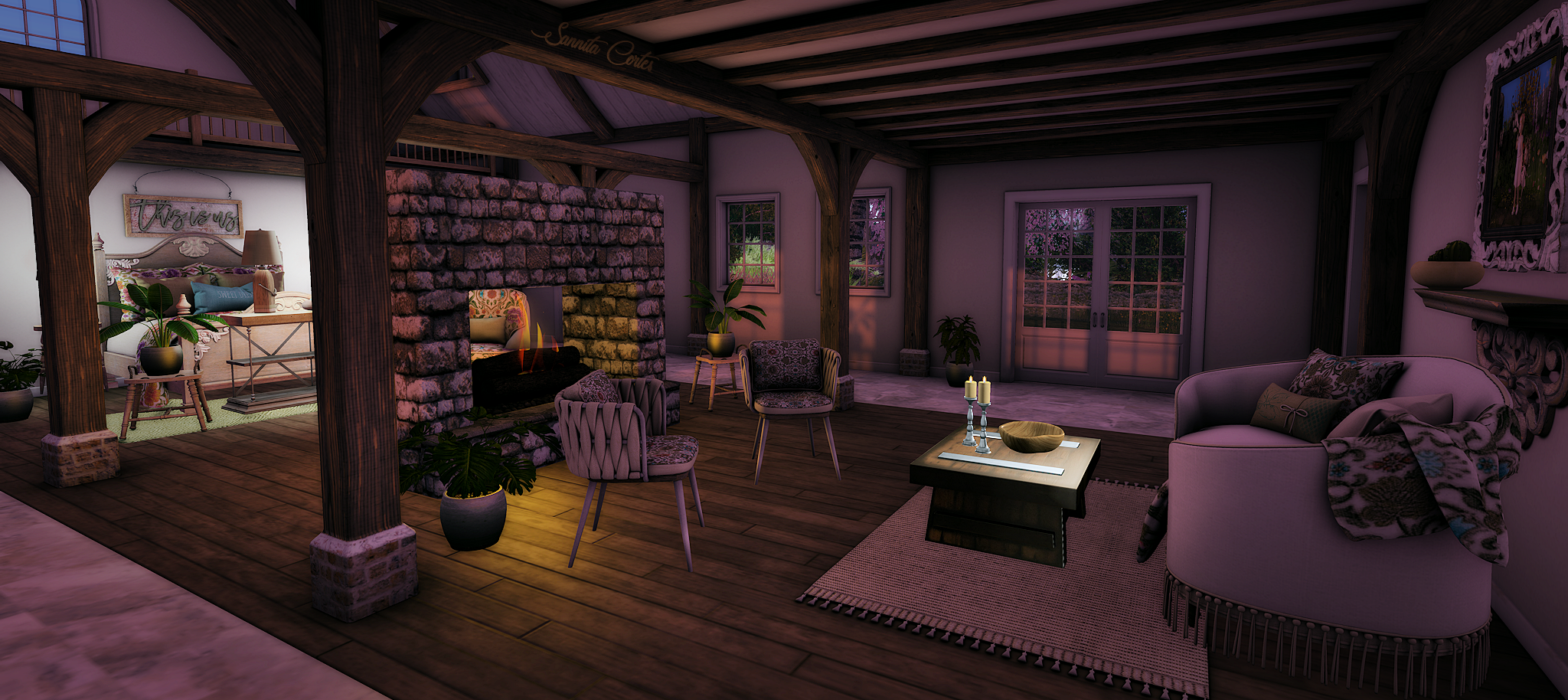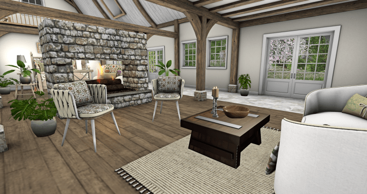 I like the idea of the stone fireplace created as a room divider and so can be used for 2 rooms.