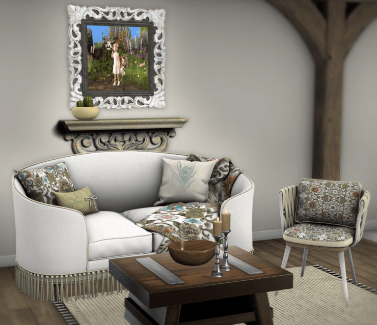 – Fringed Sofa set with sofa, table, decor, rug (available adult&pg) 24 LI