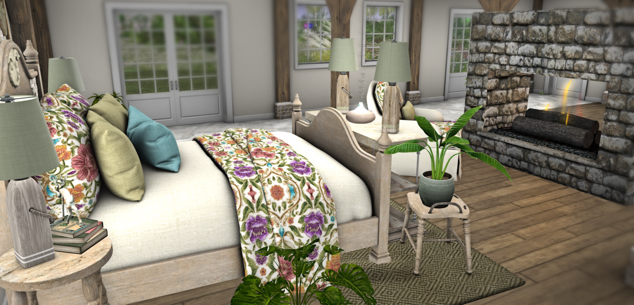 – Bed with sidetables, decor and rug (available as pg&adult) – 27 LI