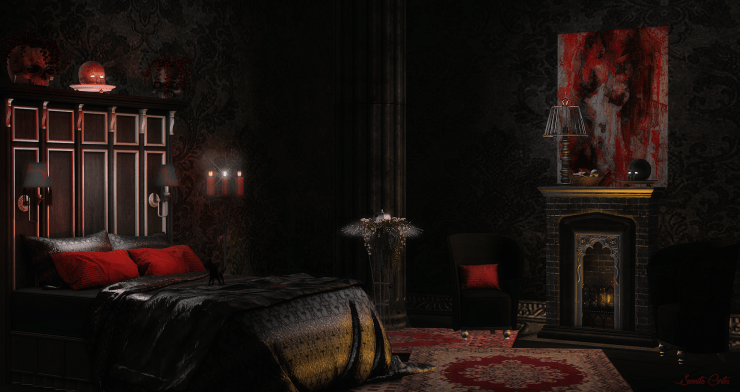 DD Luna Gothic Bed And Fireplace Set by Dreamland Designs ==> @Hallow Manor October 15th to Nov 1st