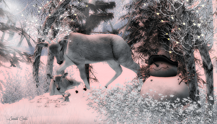 Winter Snowy Scene – Deer Family – 16 LI by CJ Creations