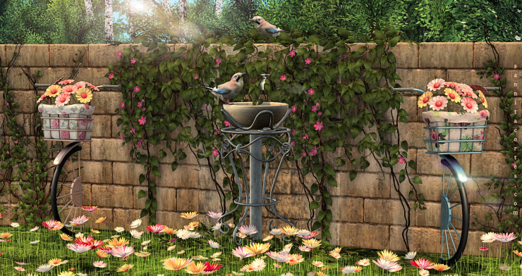The Garden Decor Bycycles are available in 4 different metallics to buy. Touching the basket linen change the pattern of it.