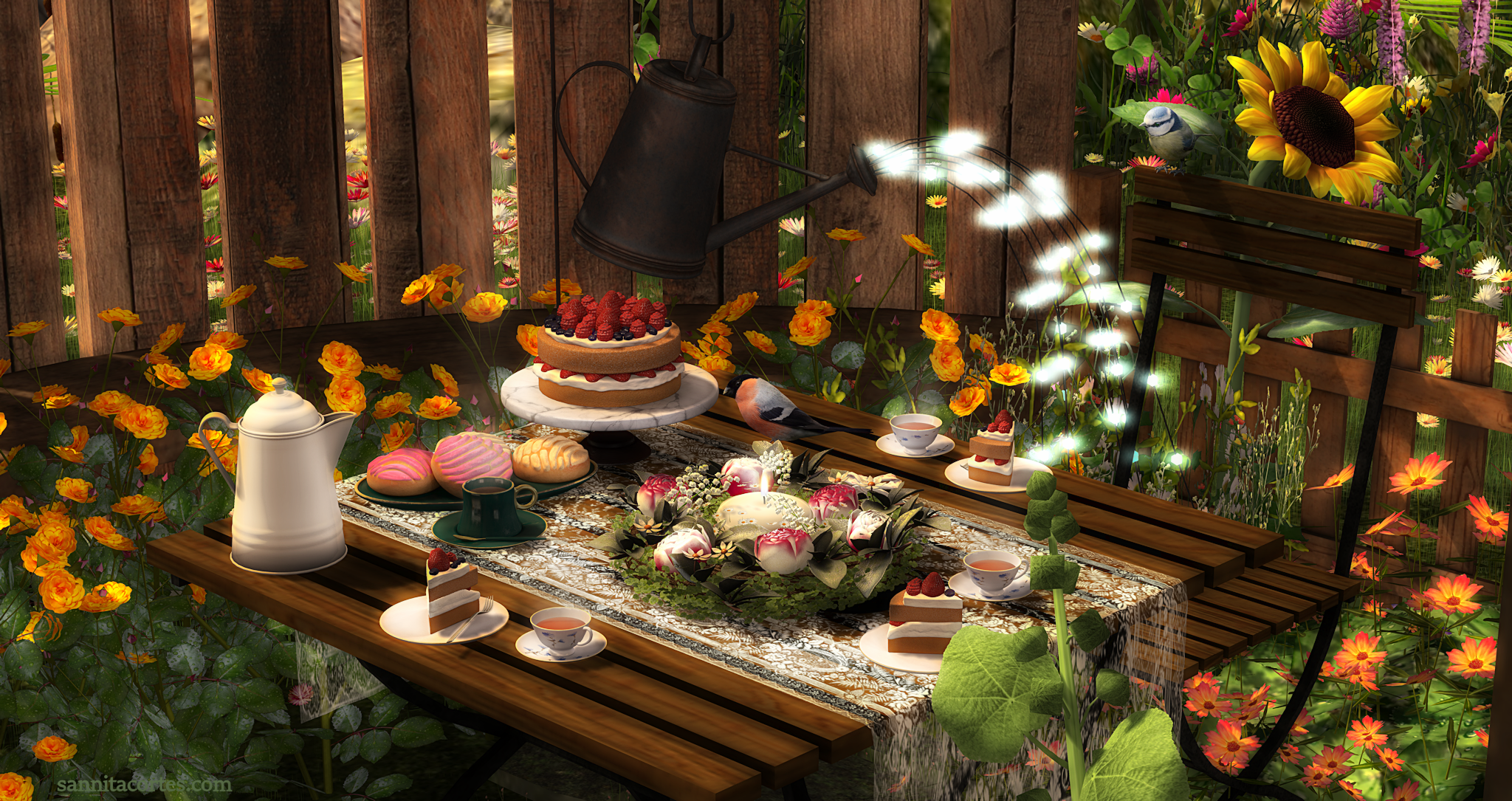 Attention: These shown here are not in the table except the coffee pitcher and the lace table-cloth.
