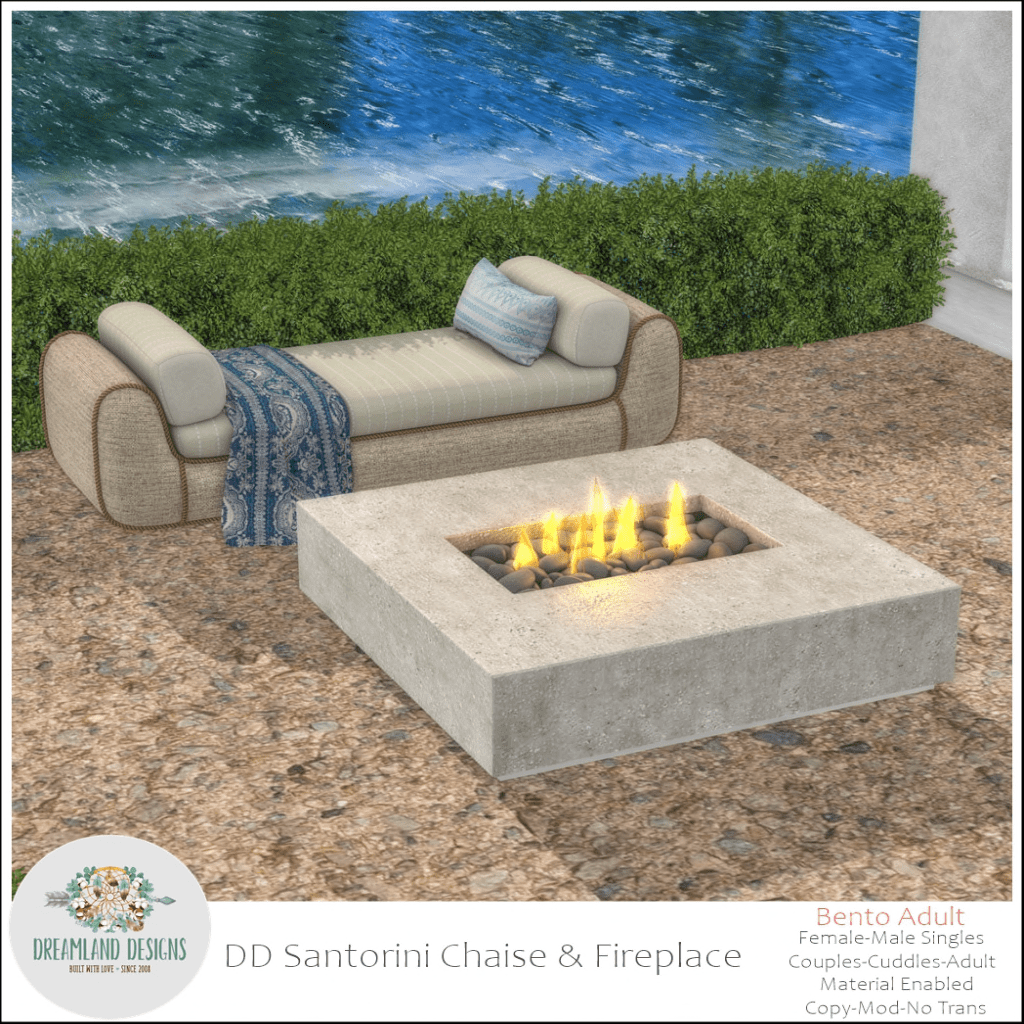 Santorini Chaise & Fireplace Set – Adult by Dreamland Designs *Secret Sale Jul 9-11th*