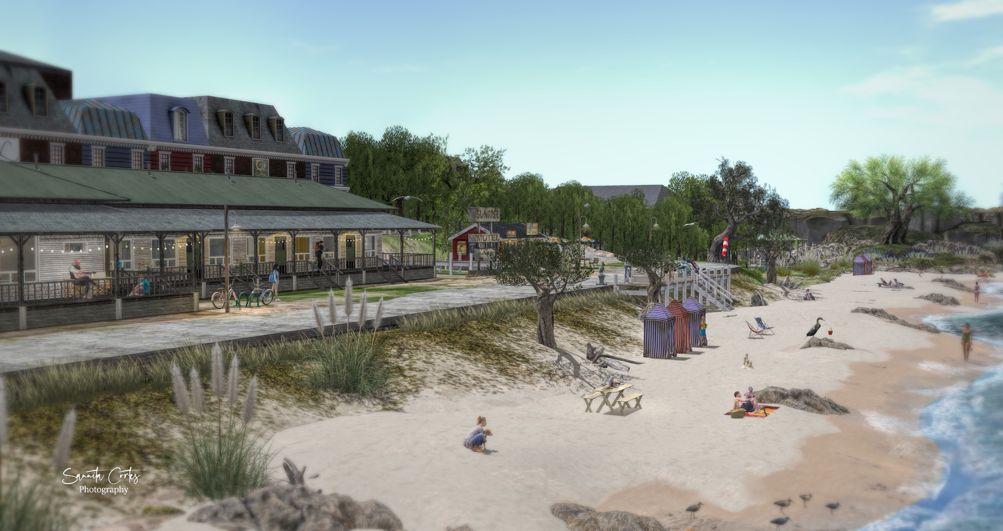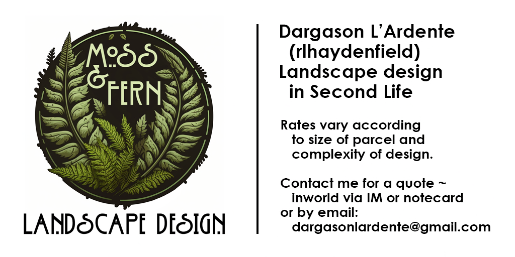 Region Concept and Design is by Sethos Lionheart, landscaping made by Sethos Lionheart of Artisan Antiques and Dargason L’Ardente of Moss&Fern. Dargason is a landscape designer in SL.
