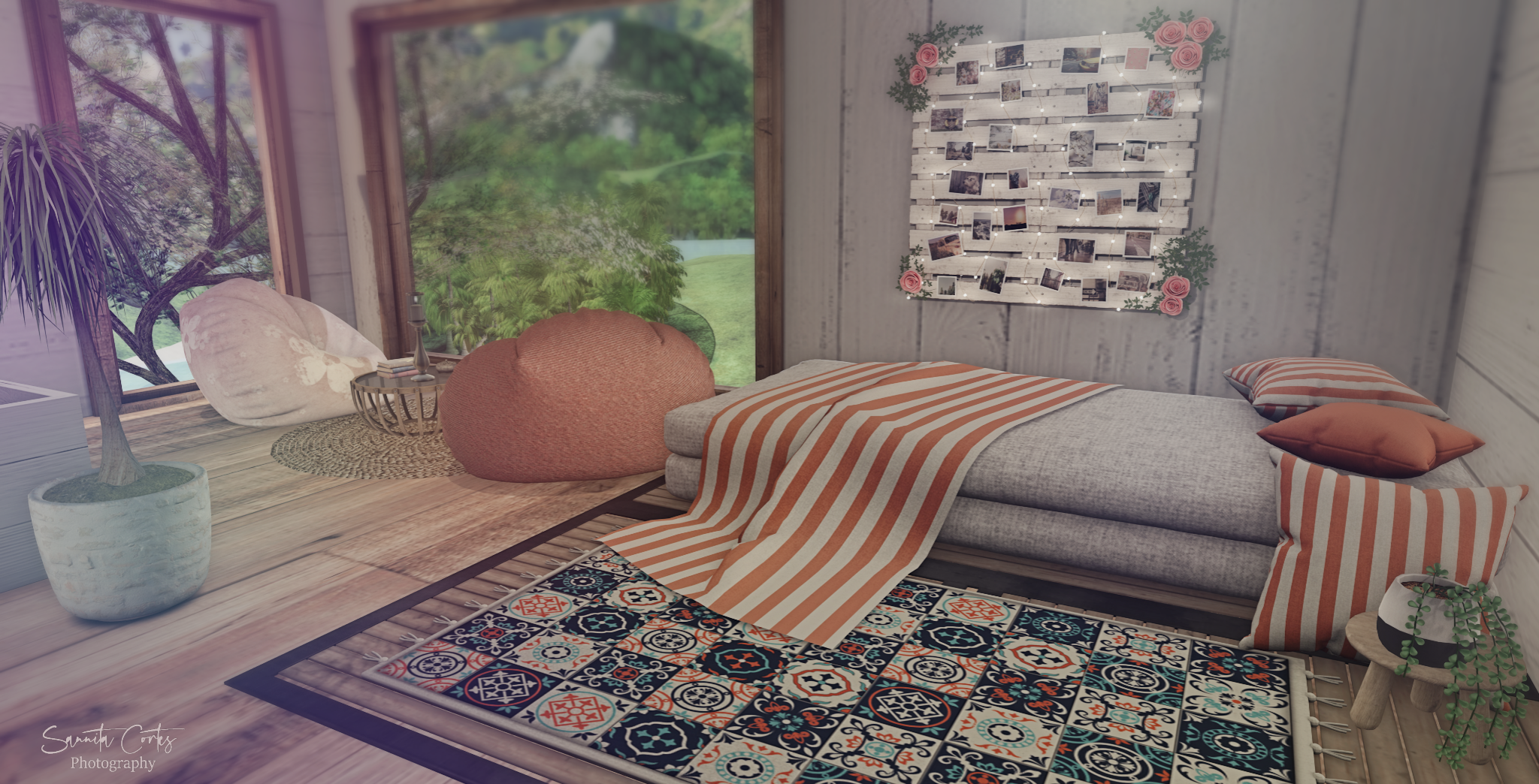 incl. bean bags with and without pattern, table with props, planter , rug