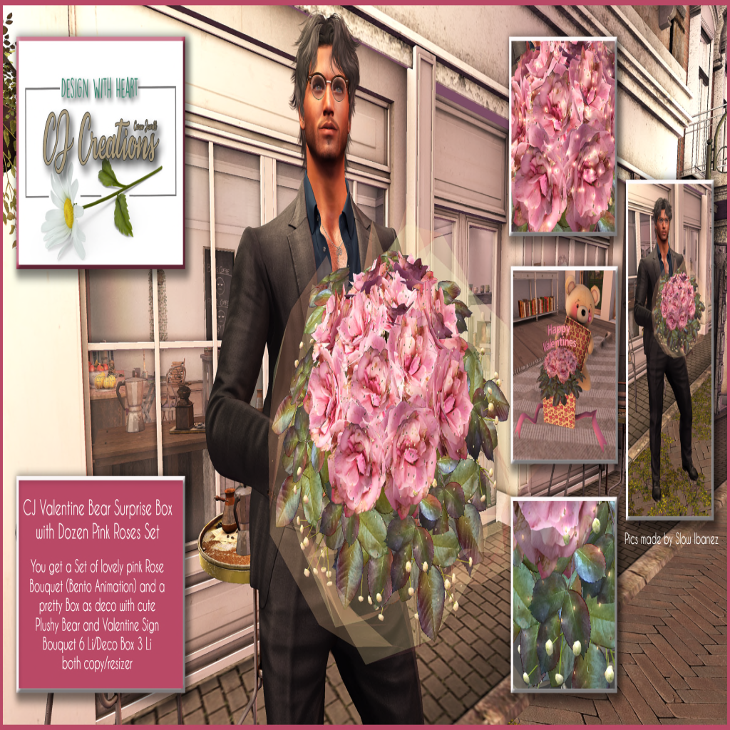 Valentine Bear Surprise Box with Dozen Pink Roses Set by CJ Creations *My Sponsor*