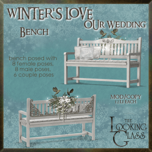 tlg – winter’s love wedding bench Share this:Tweet Click to email a link to a friend (Opens in new window) Email Like Loading...