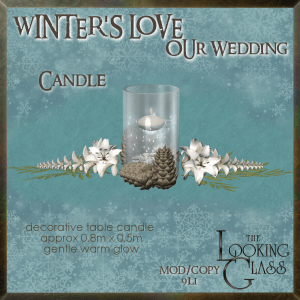 tlg – winter’s love wedding candle Share this:Tweet Click to email a link to a friend (Opens in new window) Email Like Loading...